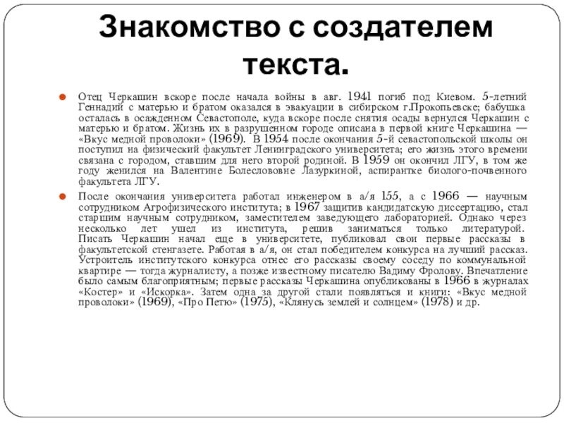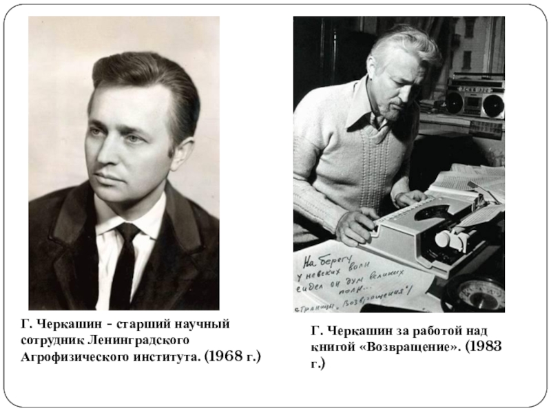 Слайд 8Г. Черкашин - старший научный сотрудник Ленинградского Агрофизического института. (1968 г.)