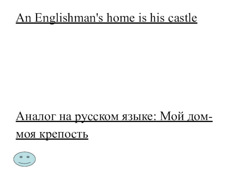 An Englishman's home is his castle  Аналог на русском языке: Мой дом- моя крепость