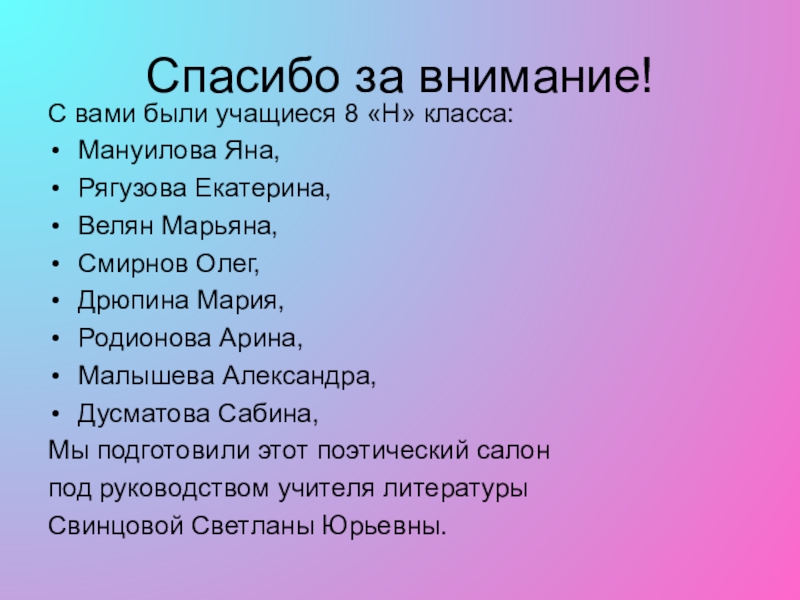 Это сайт презентаций, где можно хранить и обмениваться своими презентациями, докладами, проектами, шаблонами в формате PowerPoint с другими пользователями. Мы помогаем школьникам, студентам, учителям, преподавателям хранить и обмениваться учебными материалами.