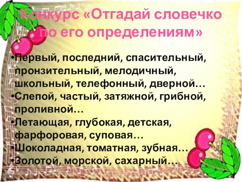 1)Врачи, ладошка, грачи, червяк, малыши, голодный