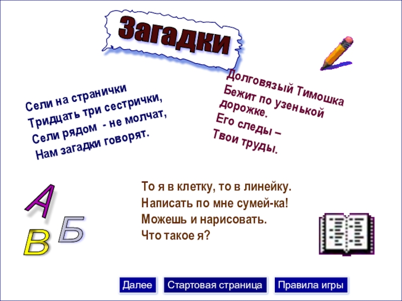2)Голубь, прорубь, Серёжка, книжка, голод, медведь