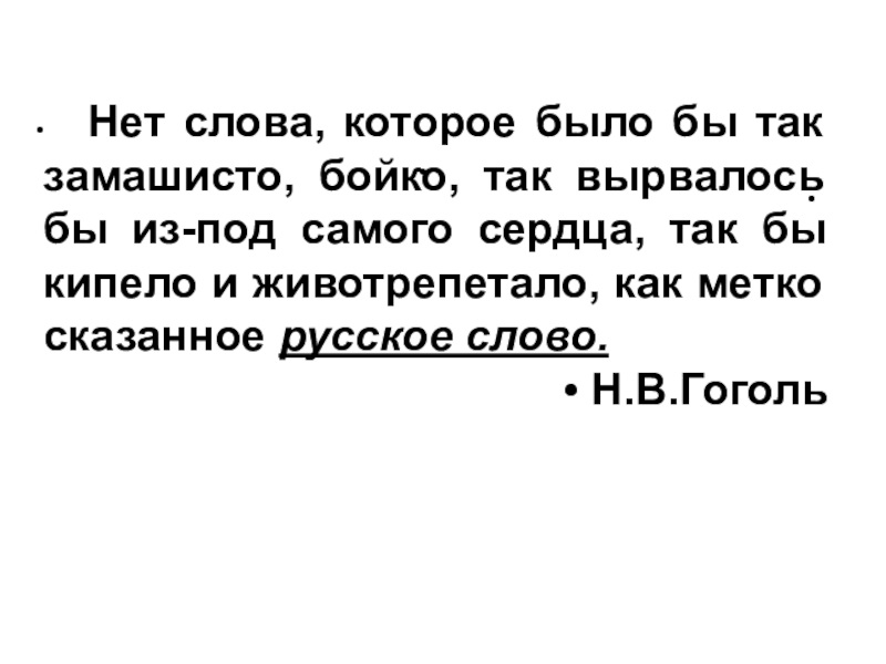 Нет слова, которое было бы так замашисто, бойко, так вырвалось бы из-под самого сердца, так бы кипело и животрепетало, как метко сказанное русское слово.