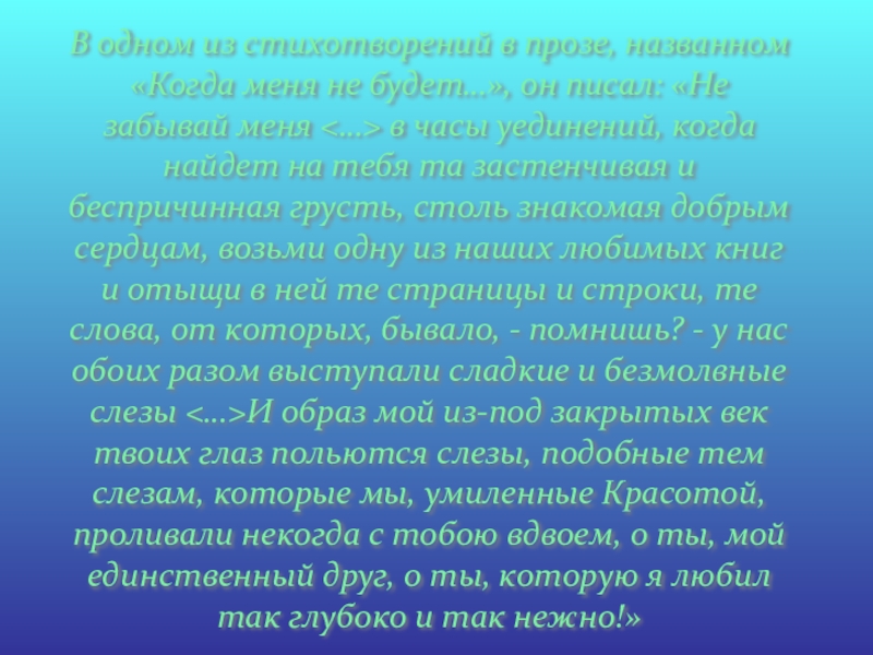 Слайд 13В одном из стихотворений в прозе, названном «Когда меня не будет…»,