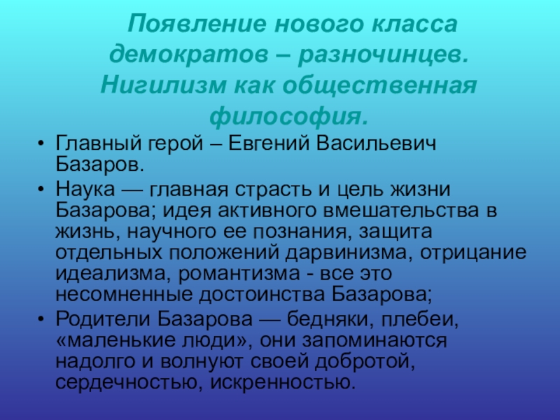 Слайд 20 Появление нового класса демократов – разночинцев. Нигилизм как общественная философия.
