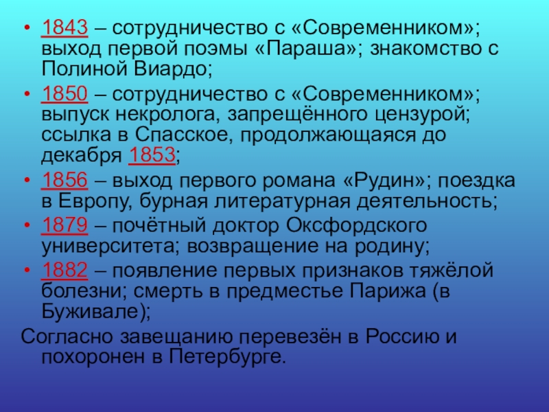 Слайд 251843 – сотрудничество с «Современником»; выход первой поэмы «Параша»; знакомство с