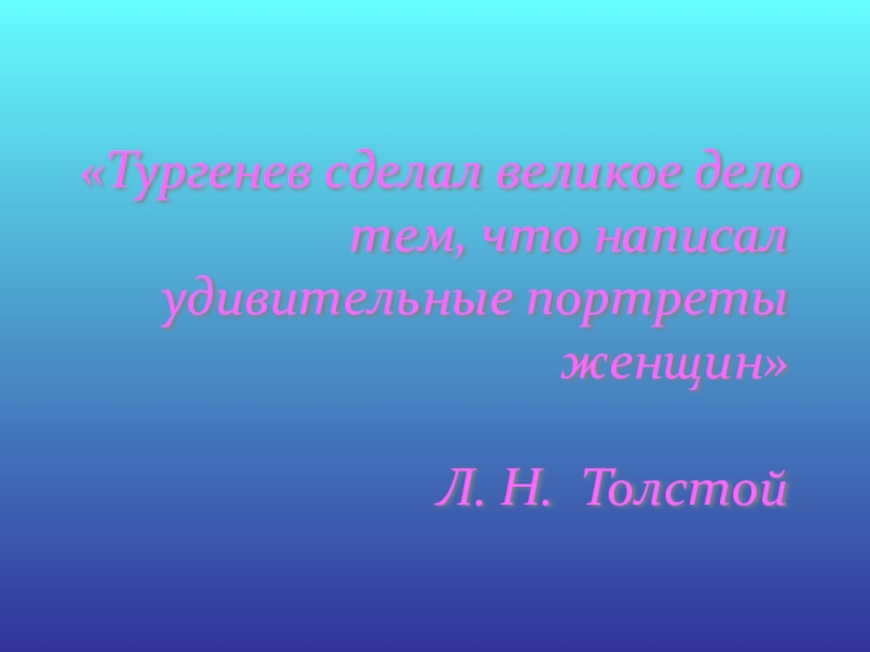 Слайд 15«Тургенев сделал великое дело тем, что написал удивительные портреты женщин»