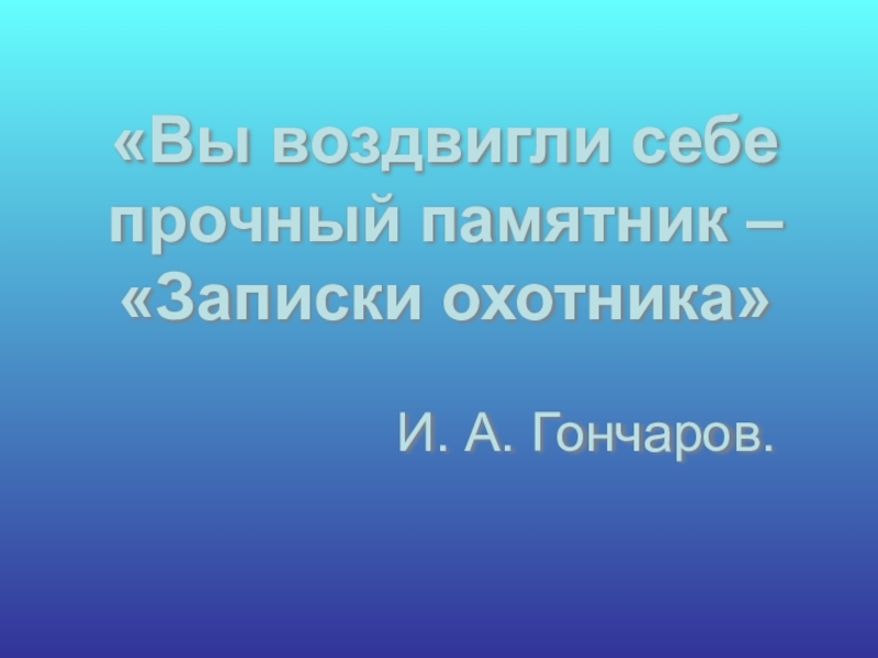 Слайд 9«Вы воздвигли себе прочный памятник – «Записки охотника»