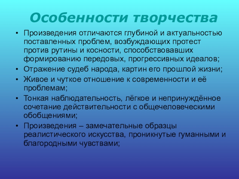 Произведения – замечательные образцы реалистического искусства, проникнутые гуманными и благородными чувствами;