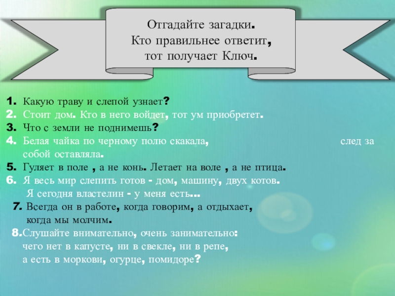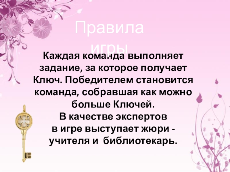 Слайд 4Каждая команда выполняет задание, за которое получает Ключ. Победителем становится команда,