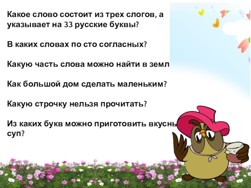 Слайд 19Какое слово состоит из трех слогов, а указывает на 33 русские