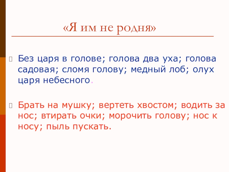 в голове; голова два уха; голова садовая; сломя голову; медный лоб; олух царя небесного.