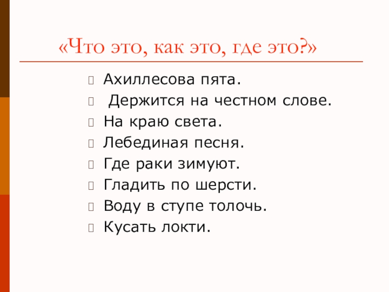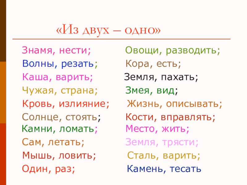 Солнце, стоять; Кости, вправлять; Камни, ломать; Место, жить;