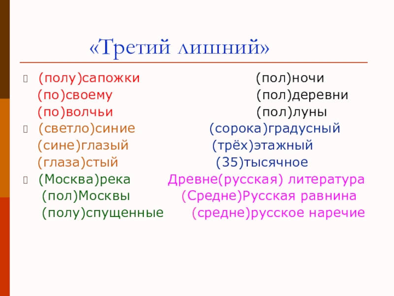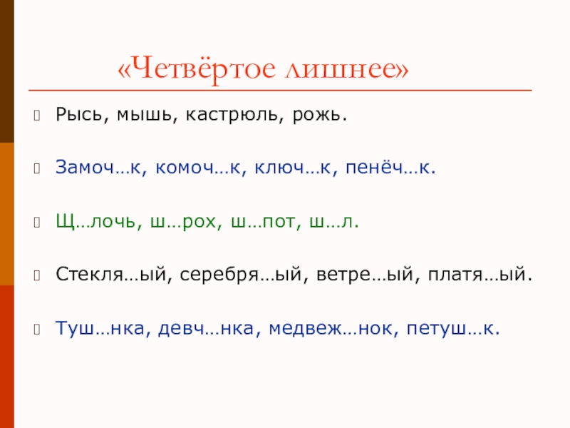 Туш…нка, девч…нка, медвеж…нок, петуш…к.