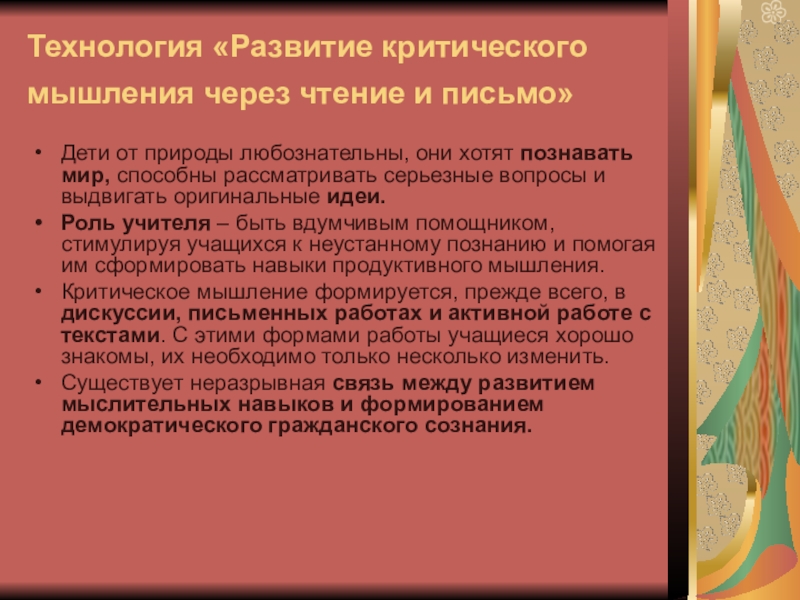 Технология «Развитие критического мышления через чтение и письмо»