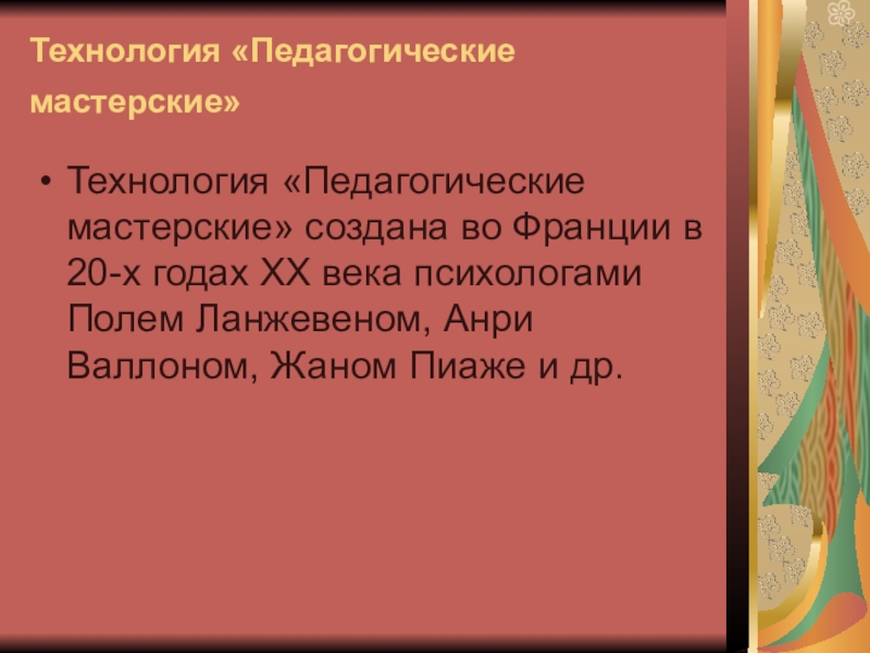 Технология «Педагогические мастерские» создана во Франции в 20-х