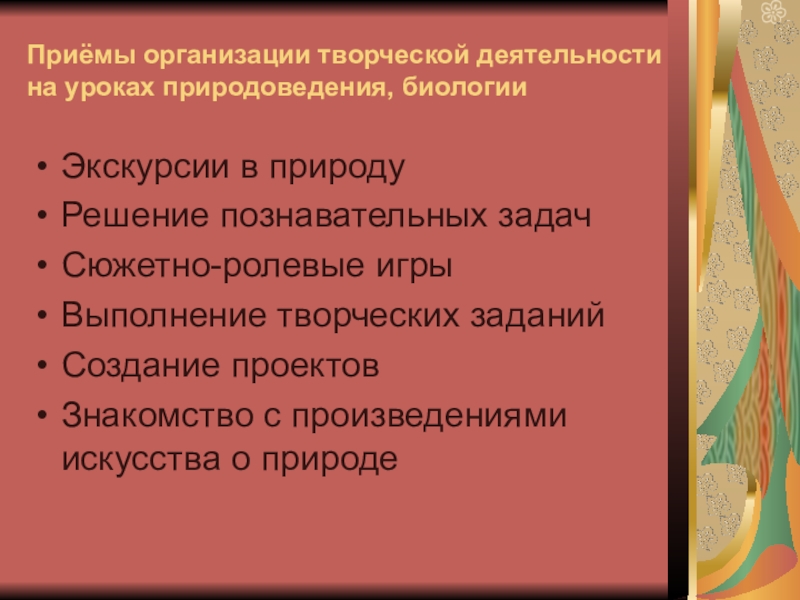 Слайд 6Приёмы организации творческой деятельности на уроках природоведения, биологии
