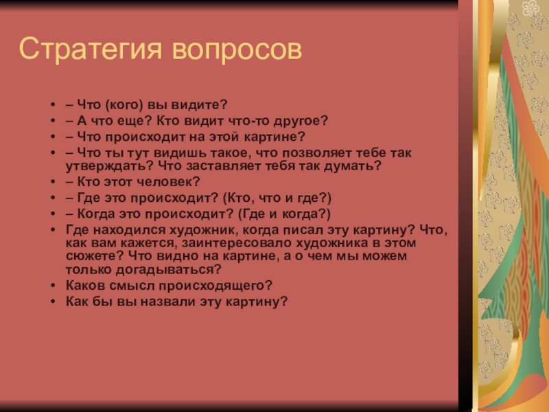 Слайд 19Стратегия вопросов