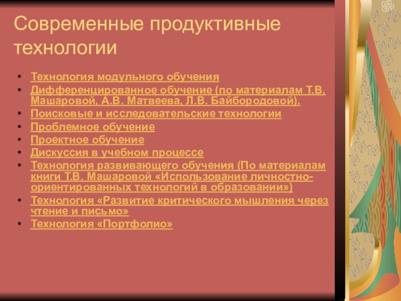 Слайд 9Современные продуктивные технологии