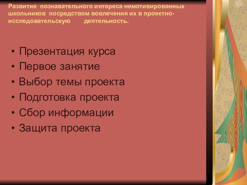 Слайд 24Развитие познавательного интереса немотивированных школьников посредством вовлечения их в проектно-исследовательскую