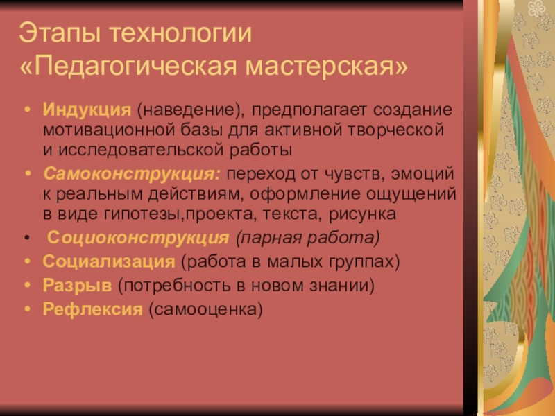 Слайд 14Этапы технологии «Педагогическая мастерская»