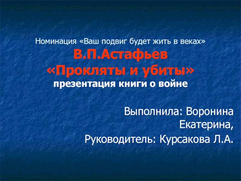 Слайд 1Номинация «Ваш подвиг будет жить в веках»