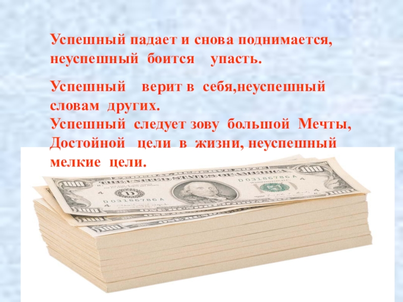 Слайд 16Успешный падает и снова поднимается, неуспешный боится упасть.
