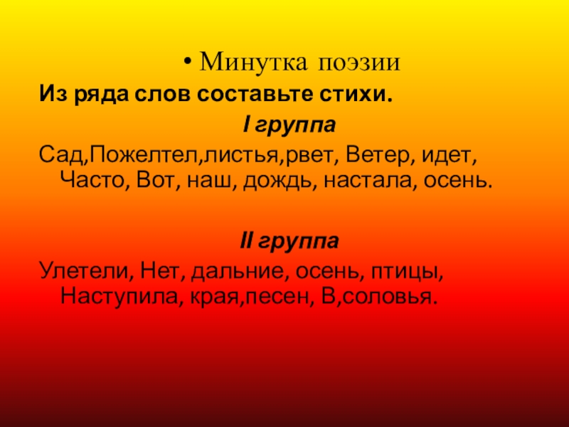 Сад,Пожелтел,листья,рвет, Ветер, идет, Часто, Вот,