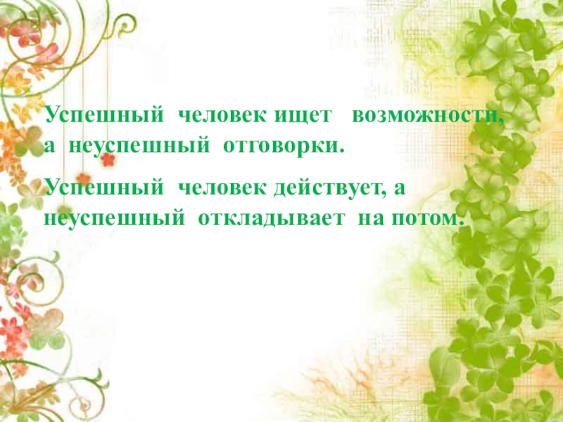 Слайд 15Успешный человек ищет возможности, а неуспешный отговорки.