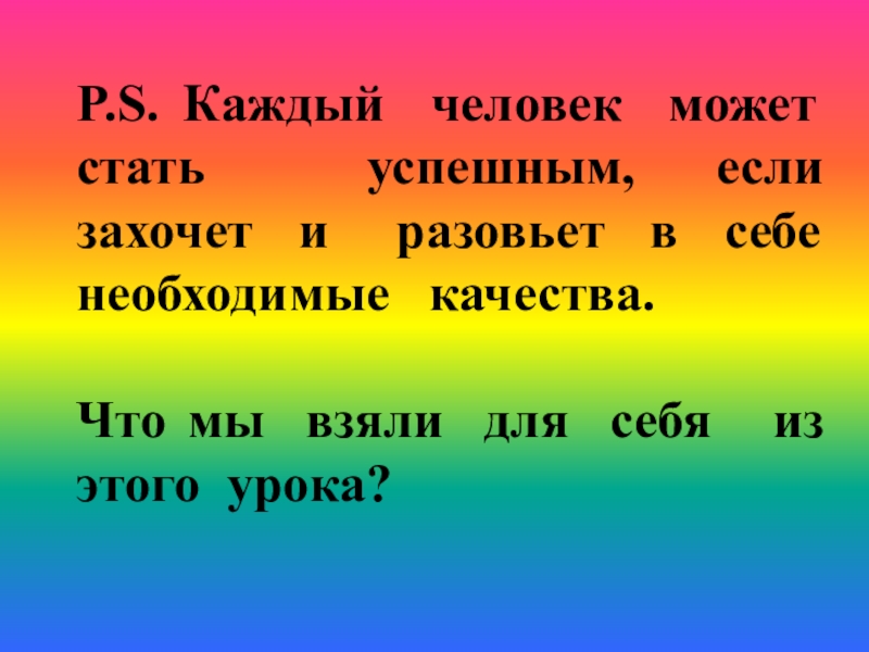 Слайд 17P.S. Каждый человек может стать успешным, если захочет и разовьет