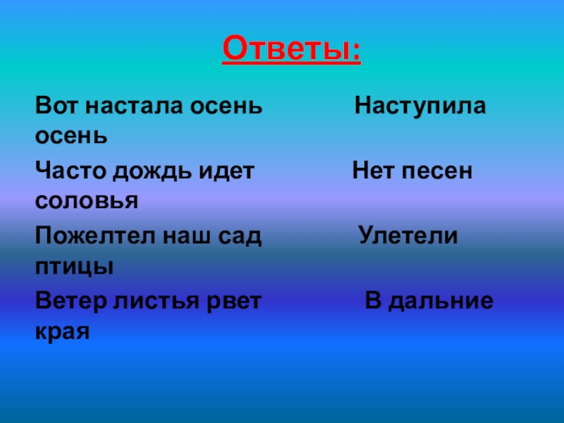 Улетели, Нет, дальние, осень, птицы, Наступила, края,песен, В,соловья.
