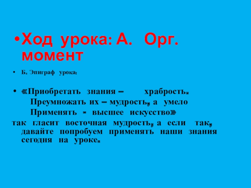 так гласит восточная мудрость, а если так, давайте попробуем применять наши знания сегодня на уроке.