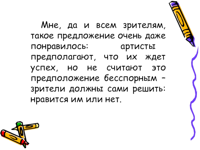 понравилось: артисты предполагают, что их ждет успех, но не считают это предположение бесспорным – зрители должны сами решить: нравится им или нет.