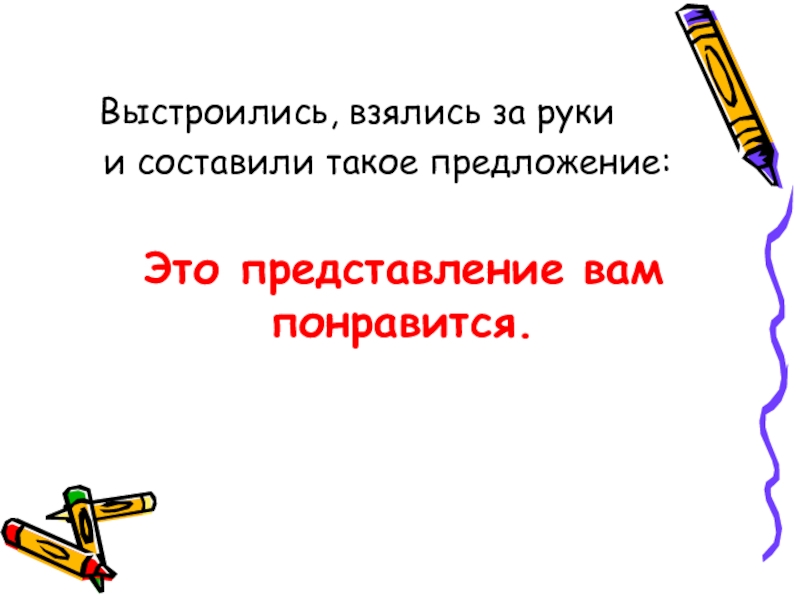 Выстроились, взялись за руки и составили такое предложение:  Это представление вам понравится.