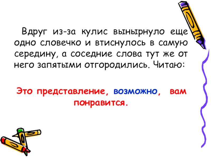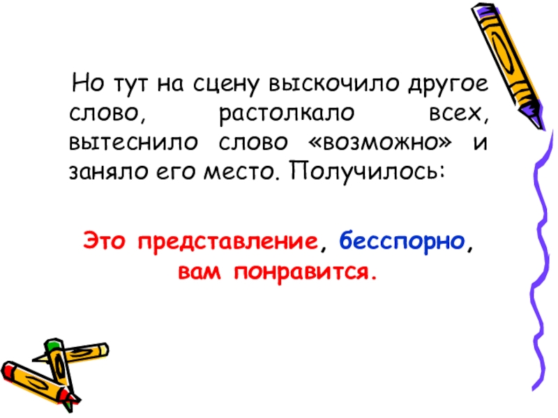 Слайд 4 Вдруг из-за кулис вынырнуло еще одно словечко и втиснулось