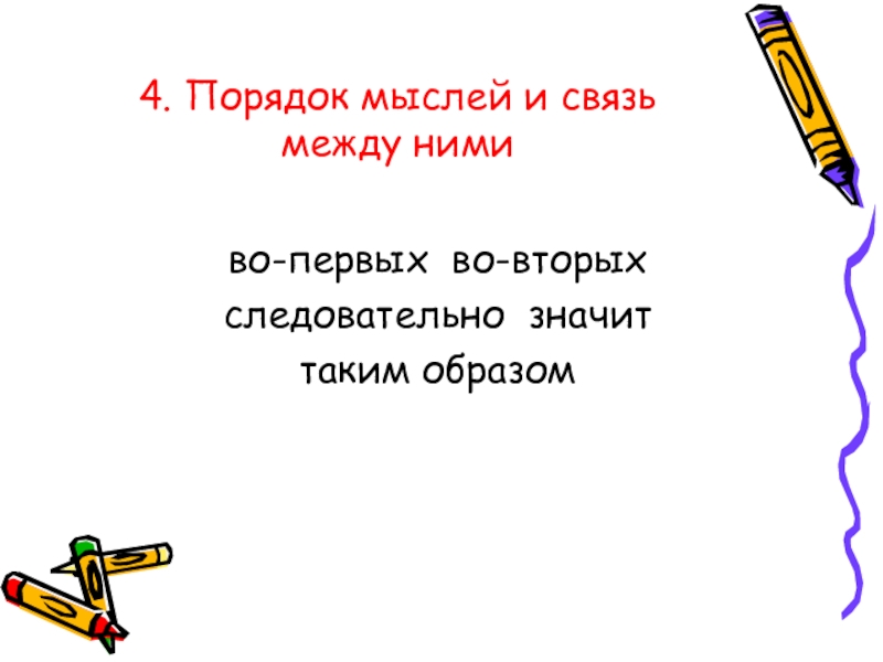 4. Порядок мыслей и связь между нимиво-первых во-вторыхследовательно значиттаким образом