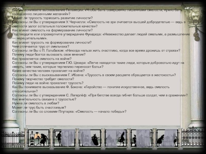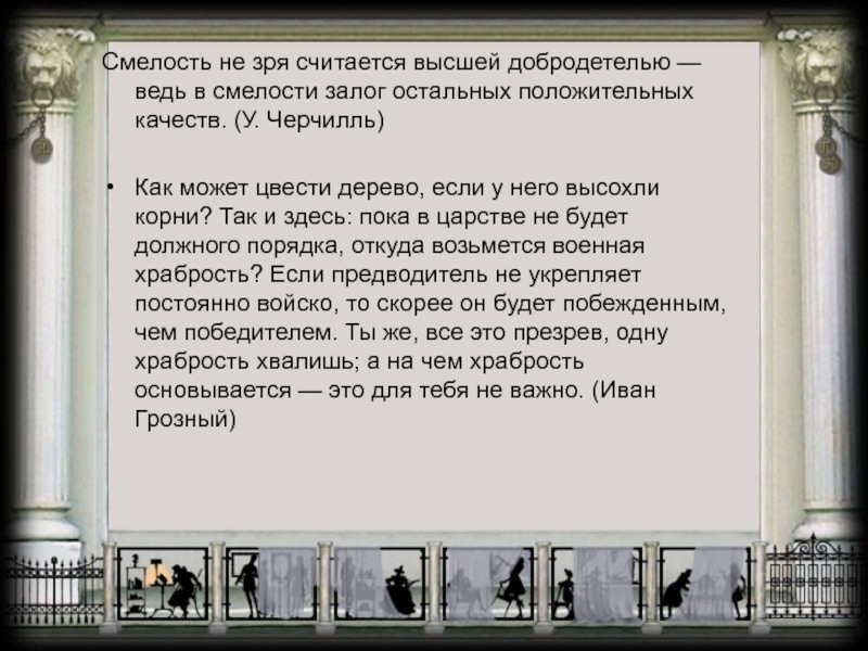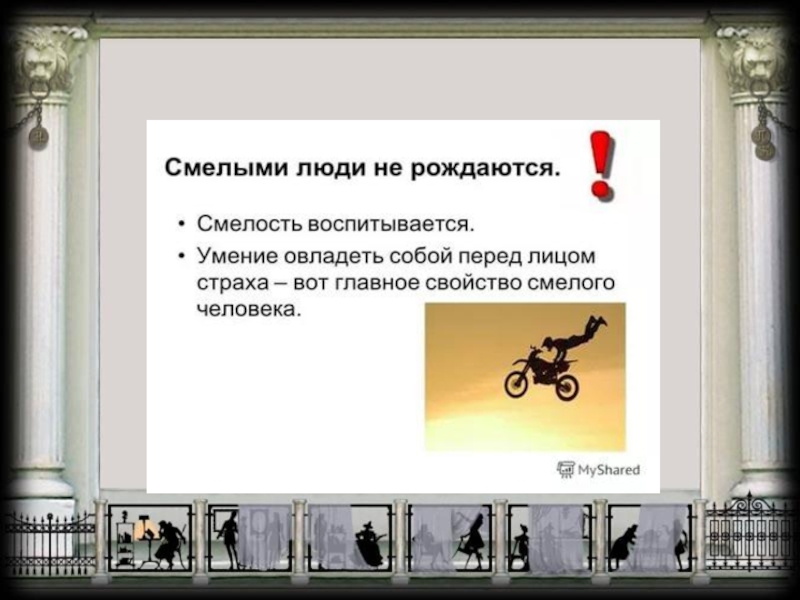 Слайд 4Смелость не зря считается высшей добродетелью — ведь в смелости залог