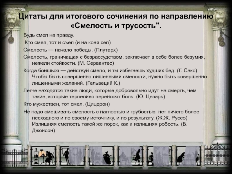 Слайд 15Цитаты для итогового сочинения по направлению «Смелость и трусость".