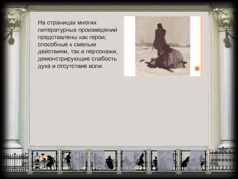 Слайд 14На страницах многих литературных произведений представлены как герои, способные к смелым