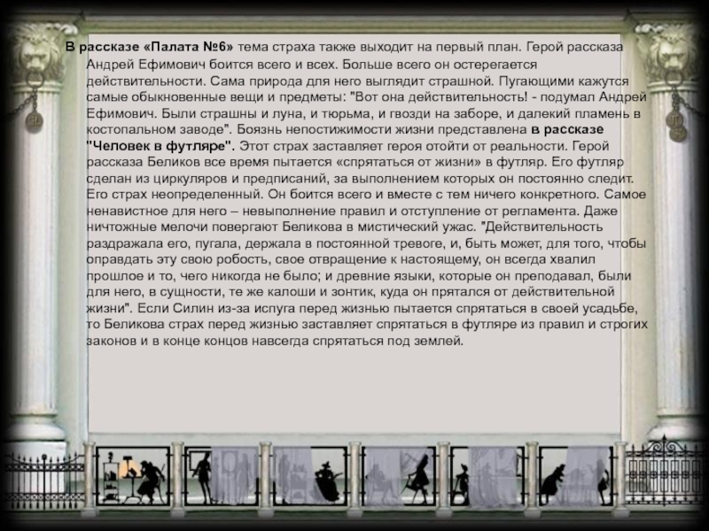Слайд 24 В рассказе «Палата №6» тема страха также выходит на первый