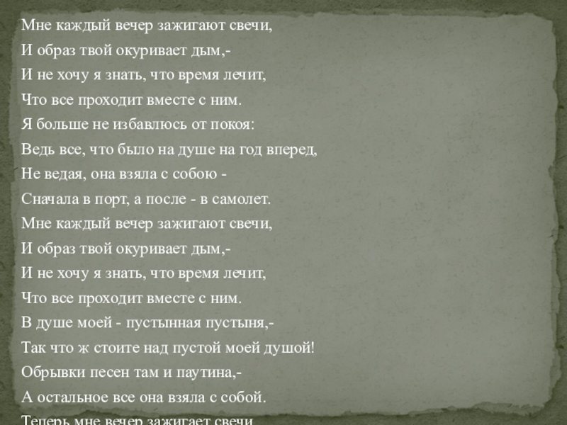 Слайд 7Мне каждый вечер зажигают свечи,