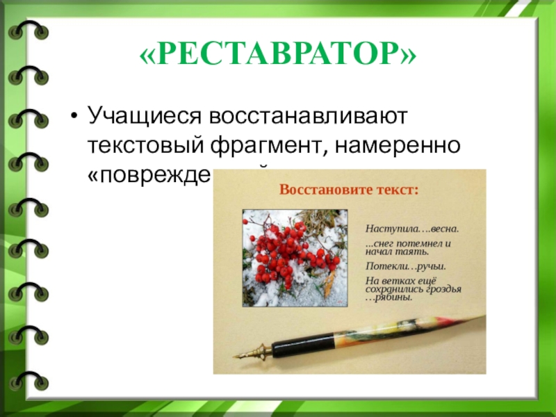 Учащиеся восстанавливают текстовый фрагмент, намеренно «поврежденный» учителем