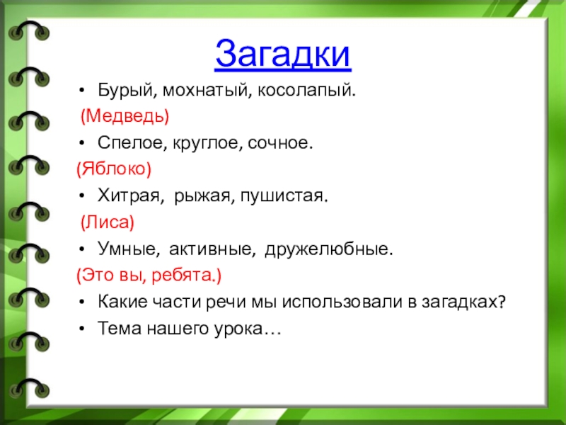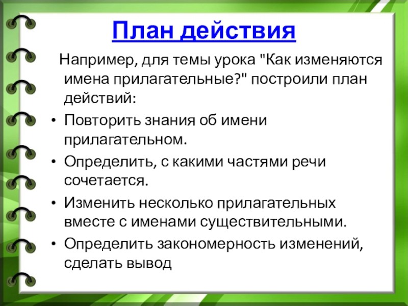 Например, для темы урока "Как изменяются имена прилагательные?"