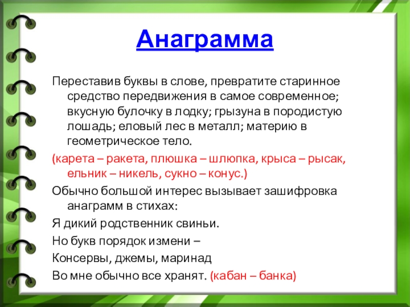 Обычно большой интерес вызывает зашифровка анаграмм в стихах: