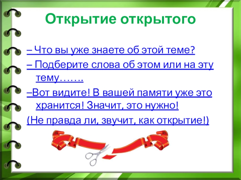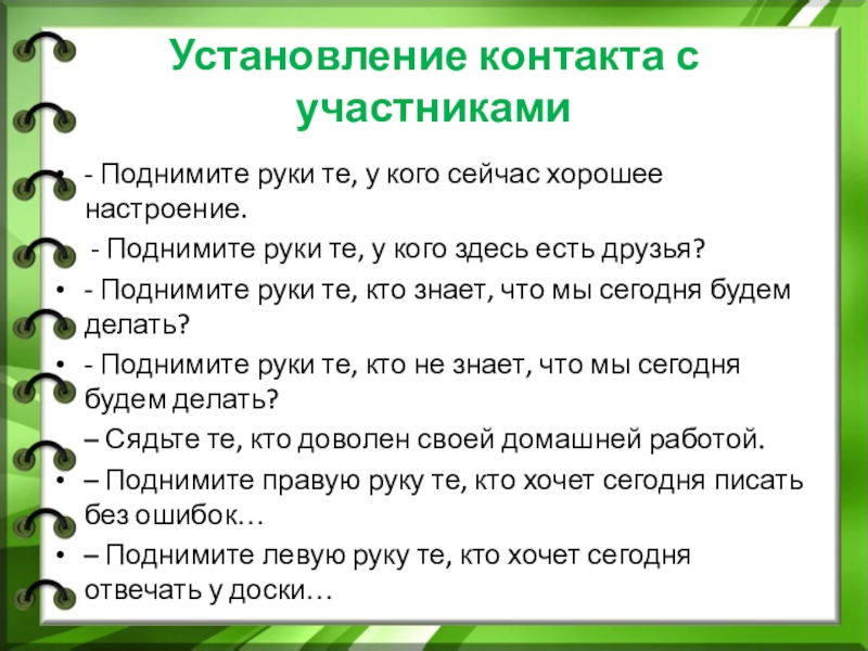 Цель – положительный настрой на работу, установление контакта между учениками.