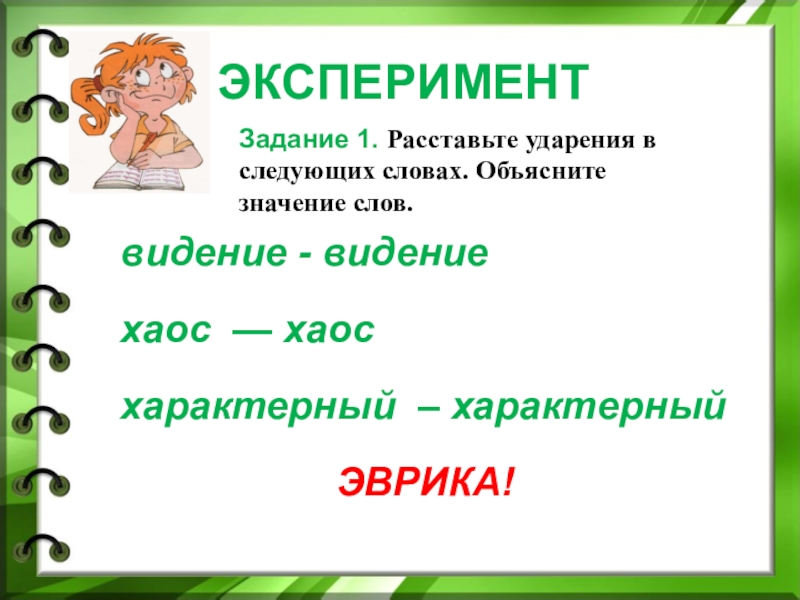Задание 1. Расставьте ударения в следующих словах. Объясните значение слов.