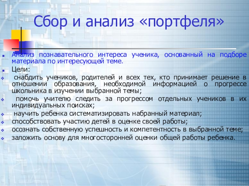 Анализ итогов образовательной деятельности – “презентация портфолио или проекта”.