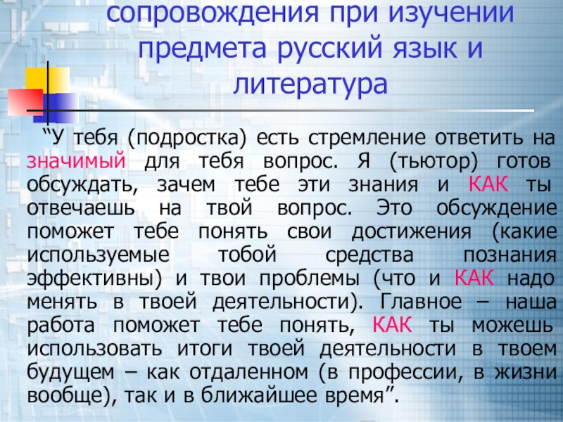 Слайд 15Методика тьюторского сопровождения при изучении предмета русский язык и литература