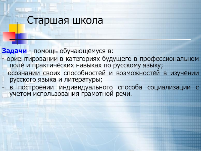- в построении индивидуального способа социализации с учетом использования грамотной речи.