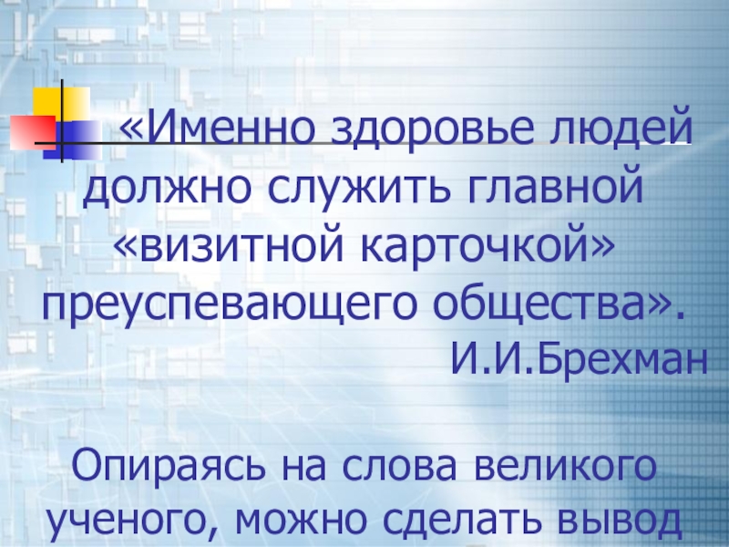 Слайд 2 «Именно здоровье людей должно служить главной «визитной карточкой»