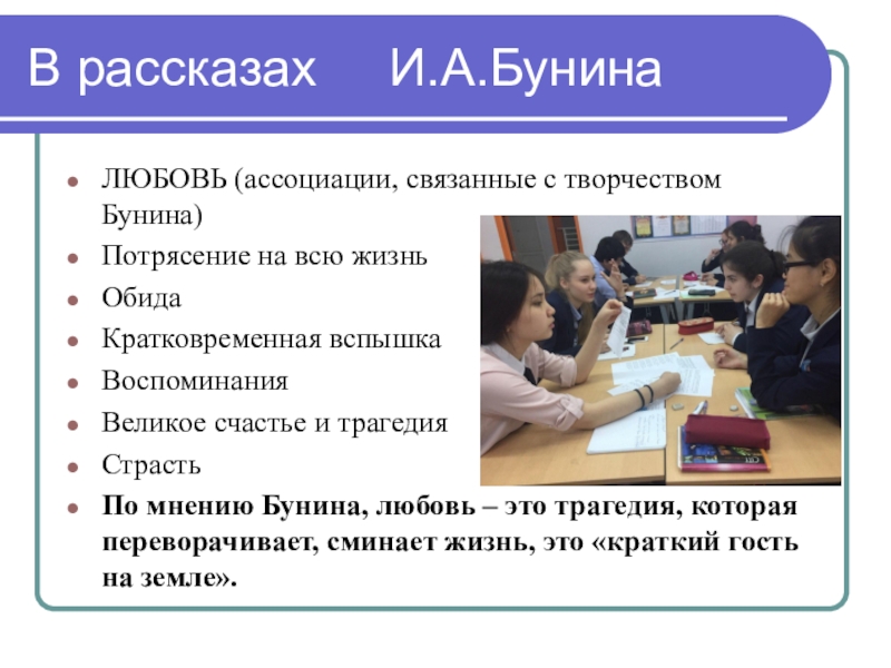 •Раскрывается ли «стихия чувств» в произведениях И.А.Бунина? Если да, то в каких?